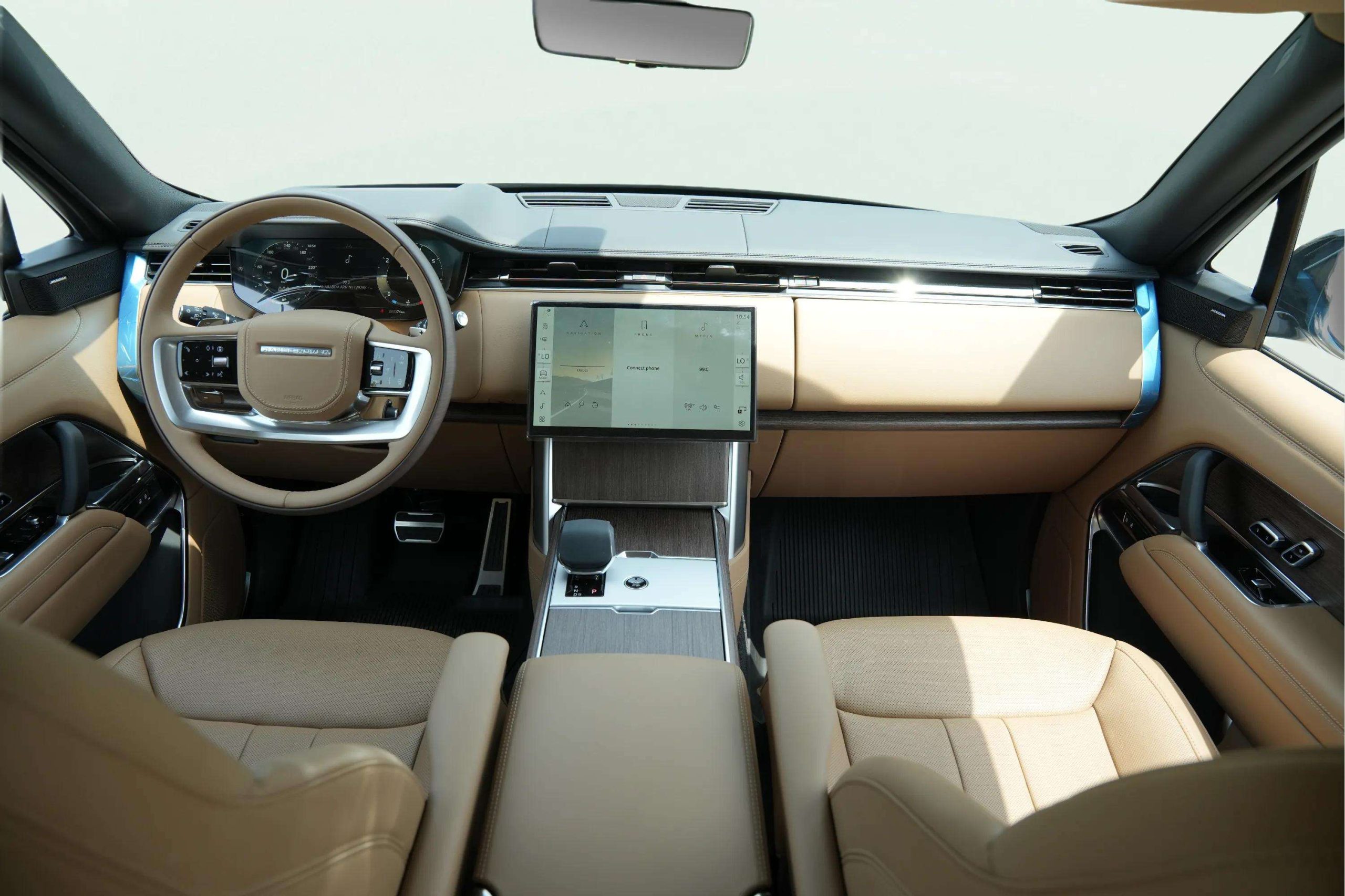 Inside the Range Rover Vogue, you’ll find Windsor leather upholstery, wood veneer finishes, and a fully digital infotainment system. The spacious cabin is enhanced with four-zone climate control, heated and ventilated seats, and an ultra-quiet environment, ensuring a first-class ride for all passengers.